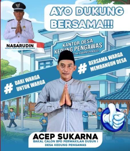 BEKASI SWATANTRANEWS – Semangat partisipasi masyarakat dalam pembangunan Desa Kedung Pengawas, Kecamatan Babelan, Kabupaten Bekasi, terus bergema. Acep Sukarna menyampaikan niat dan tekadnya untuk mendaftarkan diri sebagai calon anggota Badan Permusyawaratan Desa (BPD) dalam waktu dekat. Ia memohon doa restu sekaligus menyampaikan kesiapannya untuk bekerja sama dengan seluruh elemen guna memajukan desa tercinta. Selasa (28/4/2026)